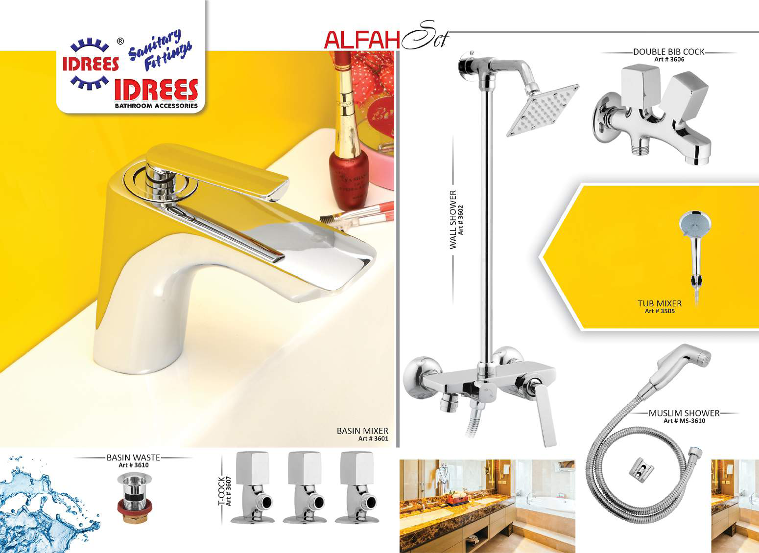Experience the epitome of bathroom luxury with Idrees Sanitary and Fittings’ Alfah Single Lever Bath Set Code 3615.