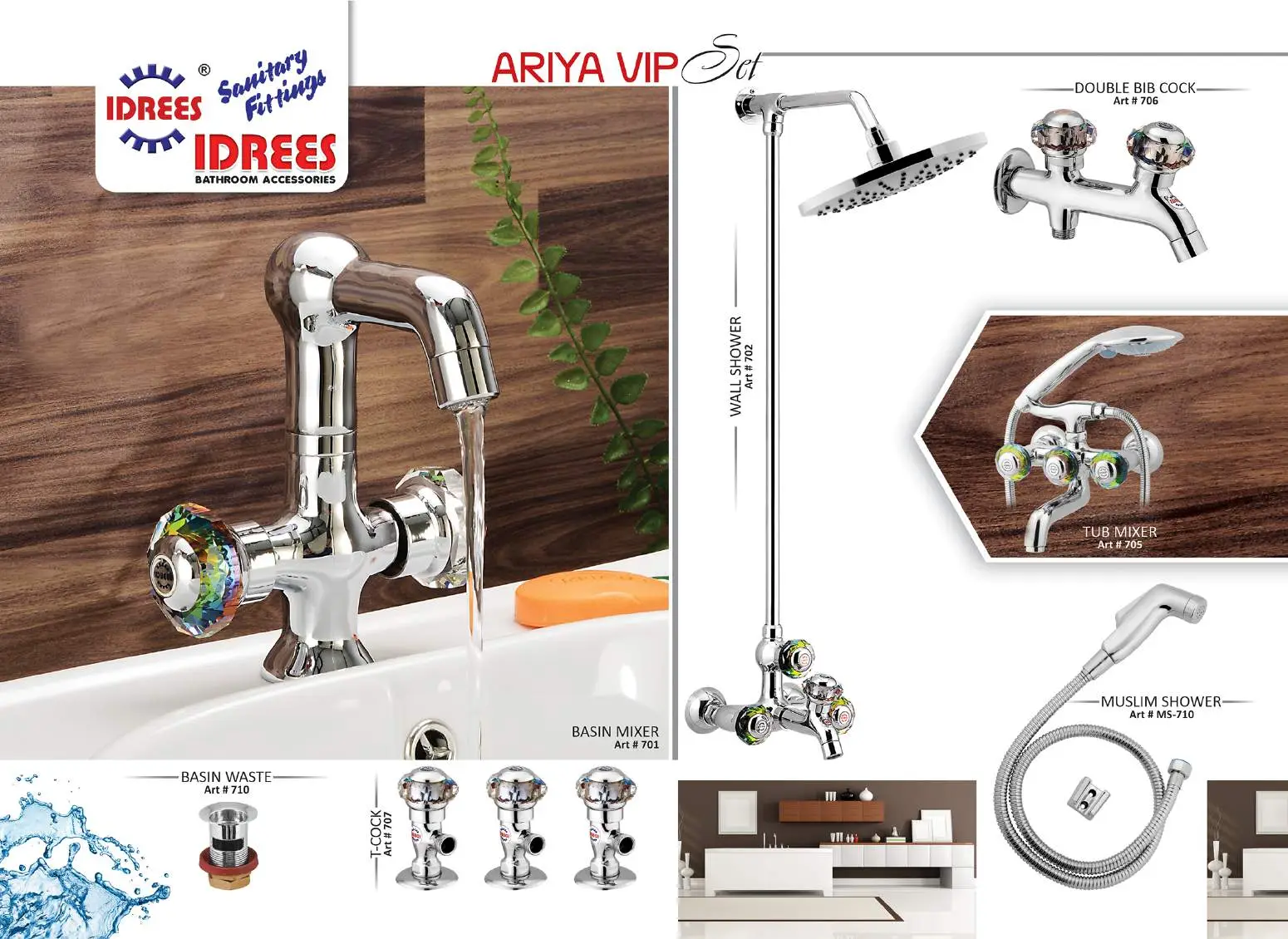 Experience the epitome of bathroom luxury with Idrees Sanitary and Fittings’ Ariya 4 Nob Bath Set Code 711.