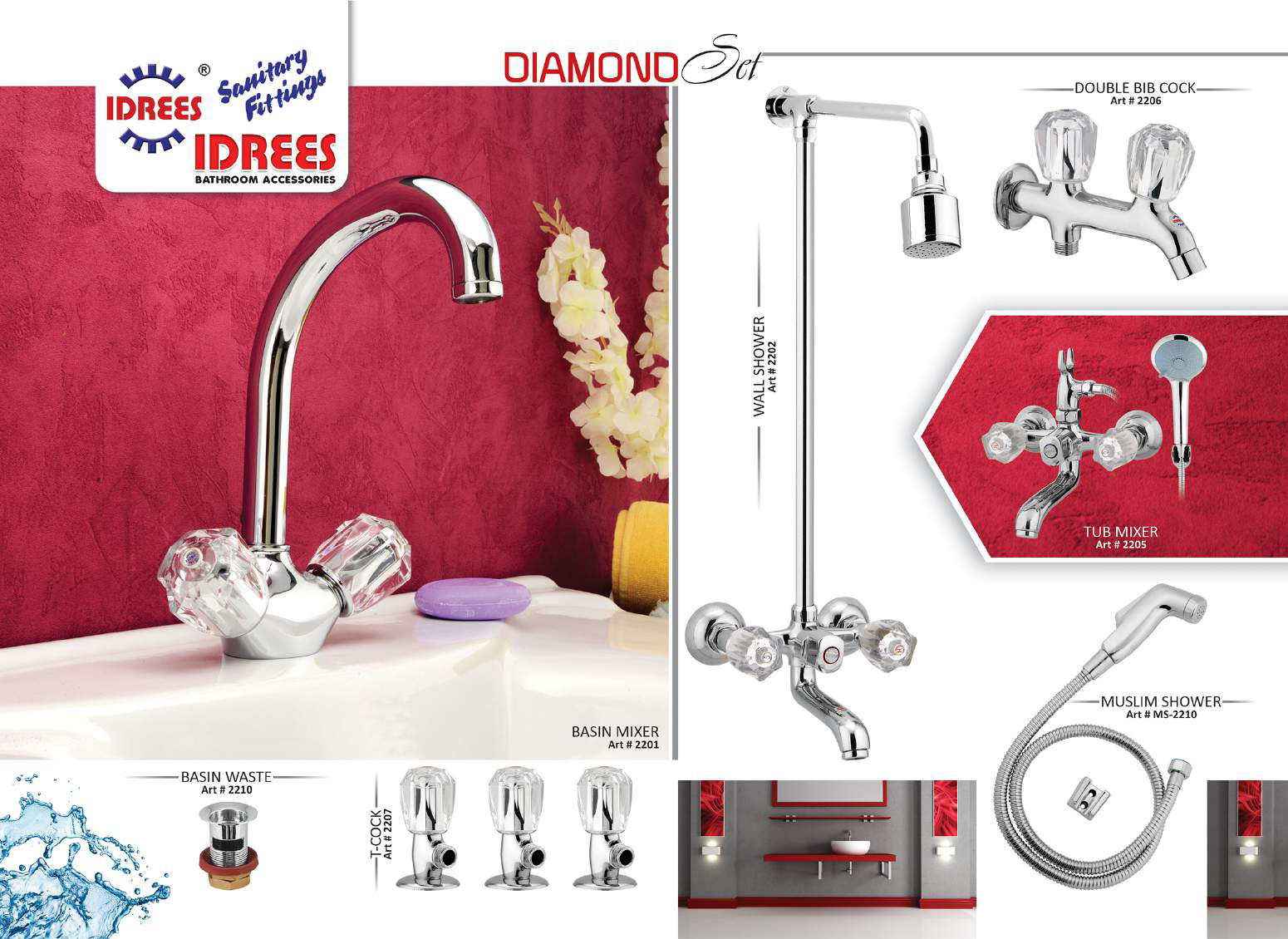 Experience the epitome of bathroom luxury with Idrees Sanitary and Fittings’ Diamond 2 Nob Bath Set Code 2212.
