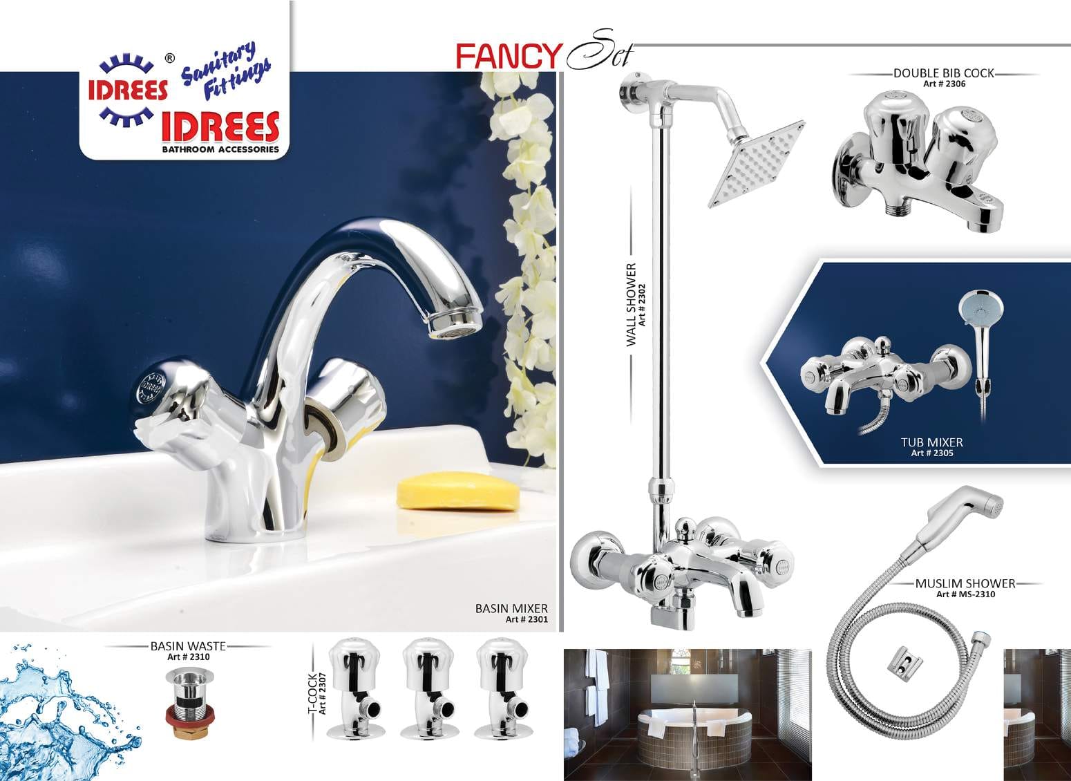 Experience the epitome of bathroom luxury with Idrees Sanitary and Fittings’ Fancy 2 Nob Bath Set Code 2312.