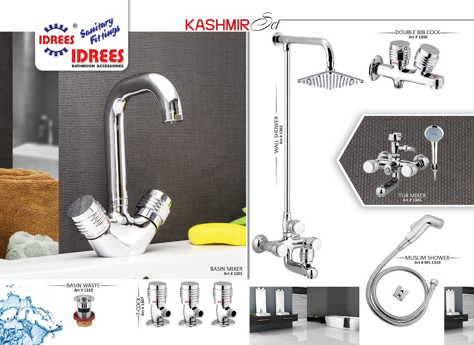 Experience the epitome of bathroom luxury with Idrees Sanitary and Fittings’ Kashmir 4 Nob Bath Set Code 1311.