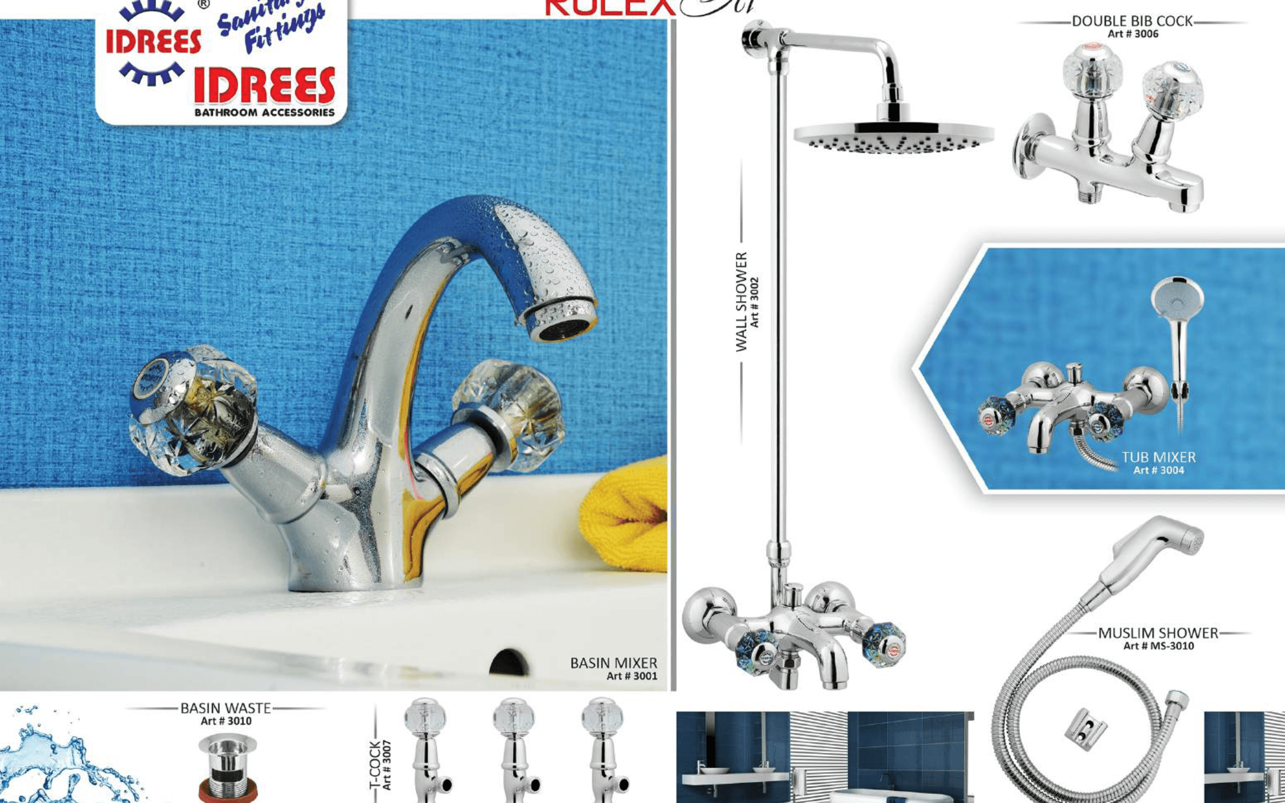 Experience the epitome of bathroom luxury with Idrees Sanitary and Fittings’ Rolax 2 Nob Bath Set Code 3012.